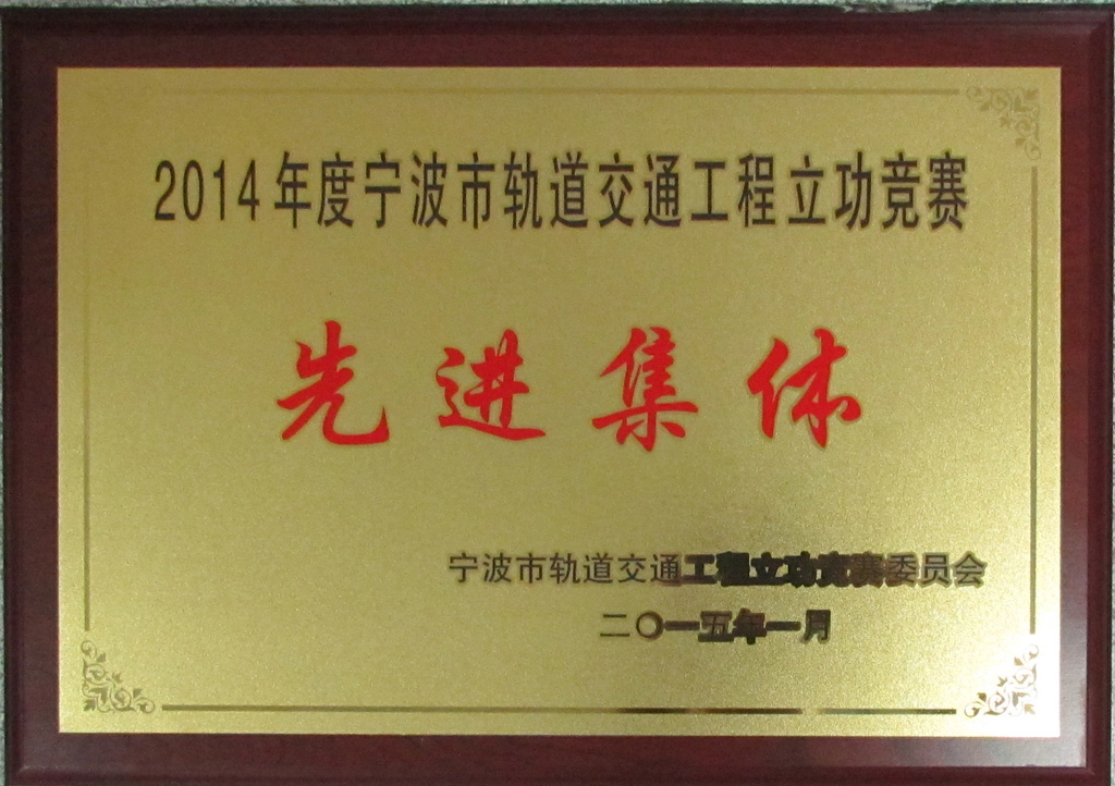 2014年度寧波市軌道交通立功競賽"先進集體"-中冠榮譽-中冠咨詢-中冠工程管理咨詢有限公司